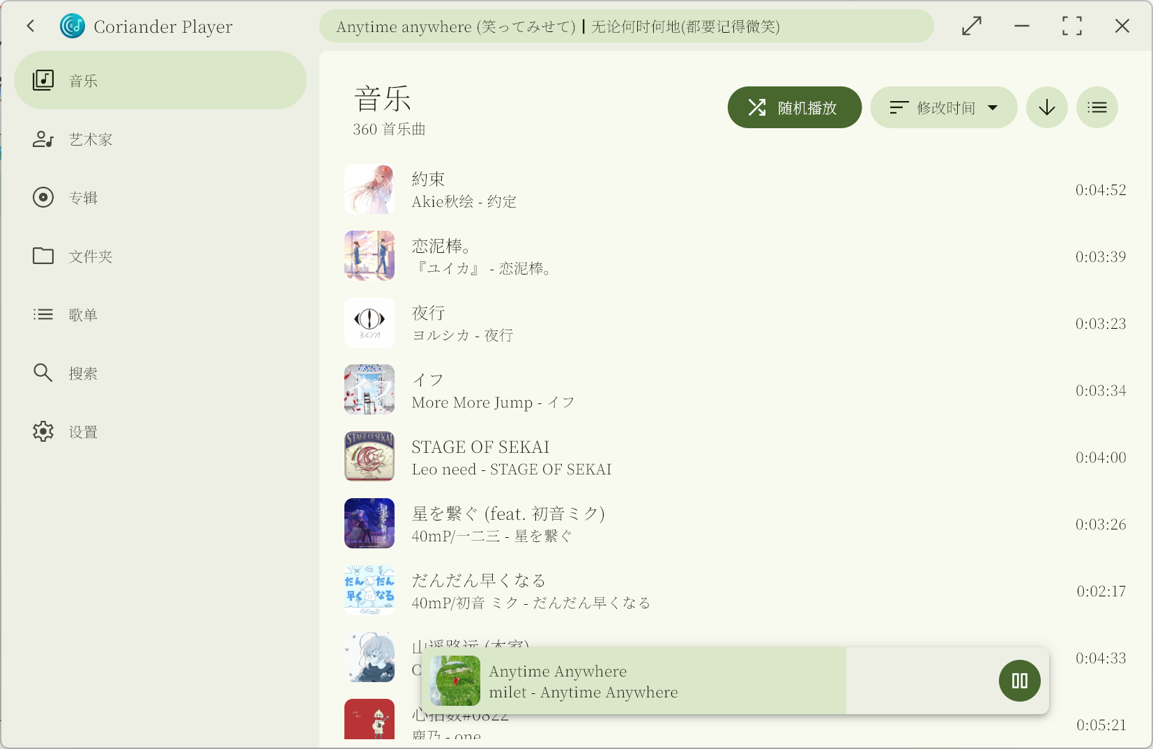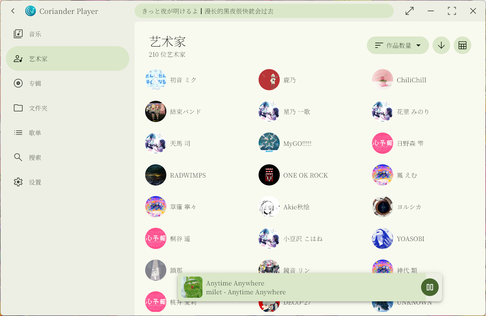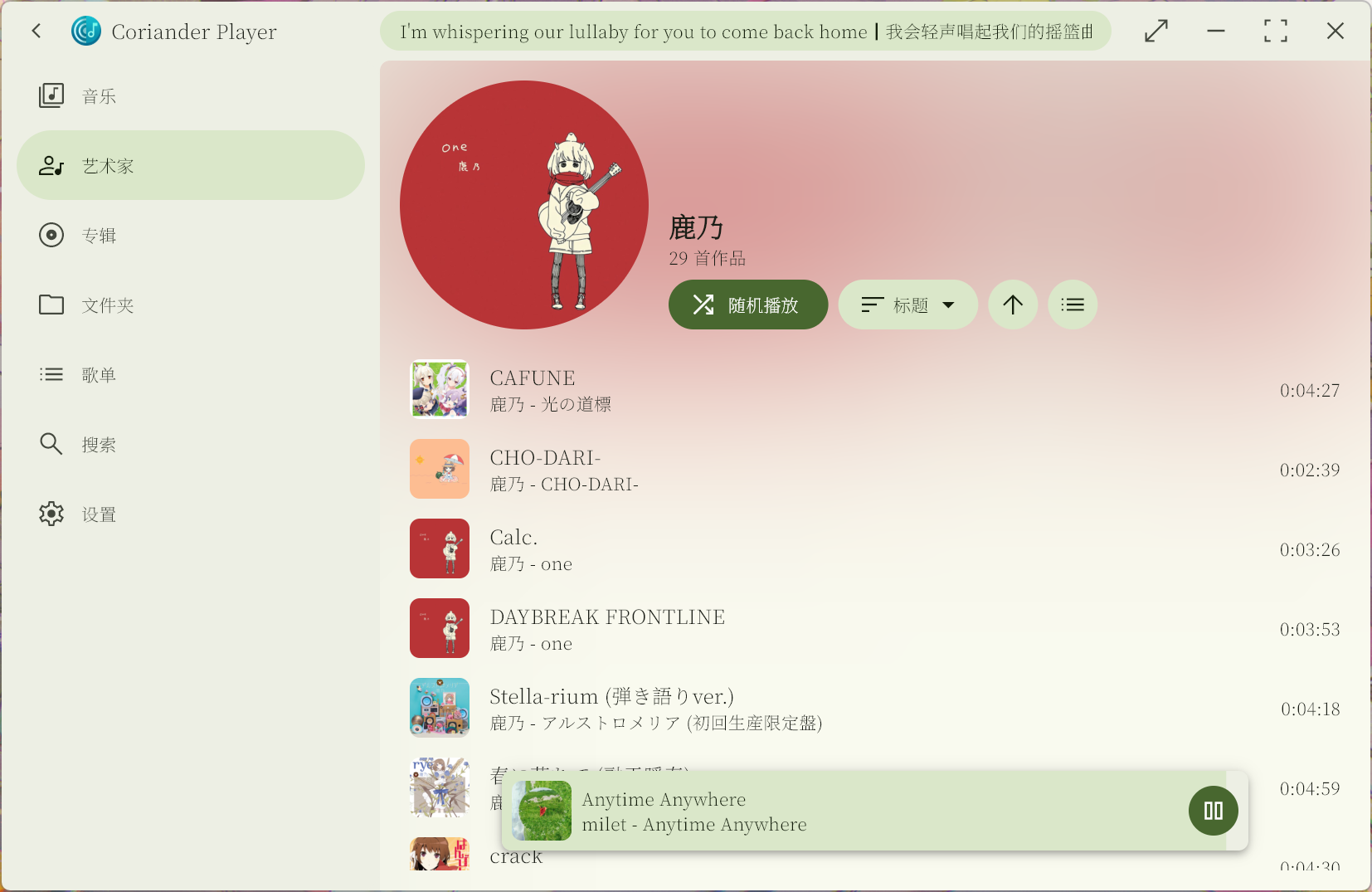 Coriander Player 是一款使用 Material You 配色的本地音乐播放器,采用 Dart(Flutter)、Rust(lofty、windows-rs)和 C(bass lib)开发。