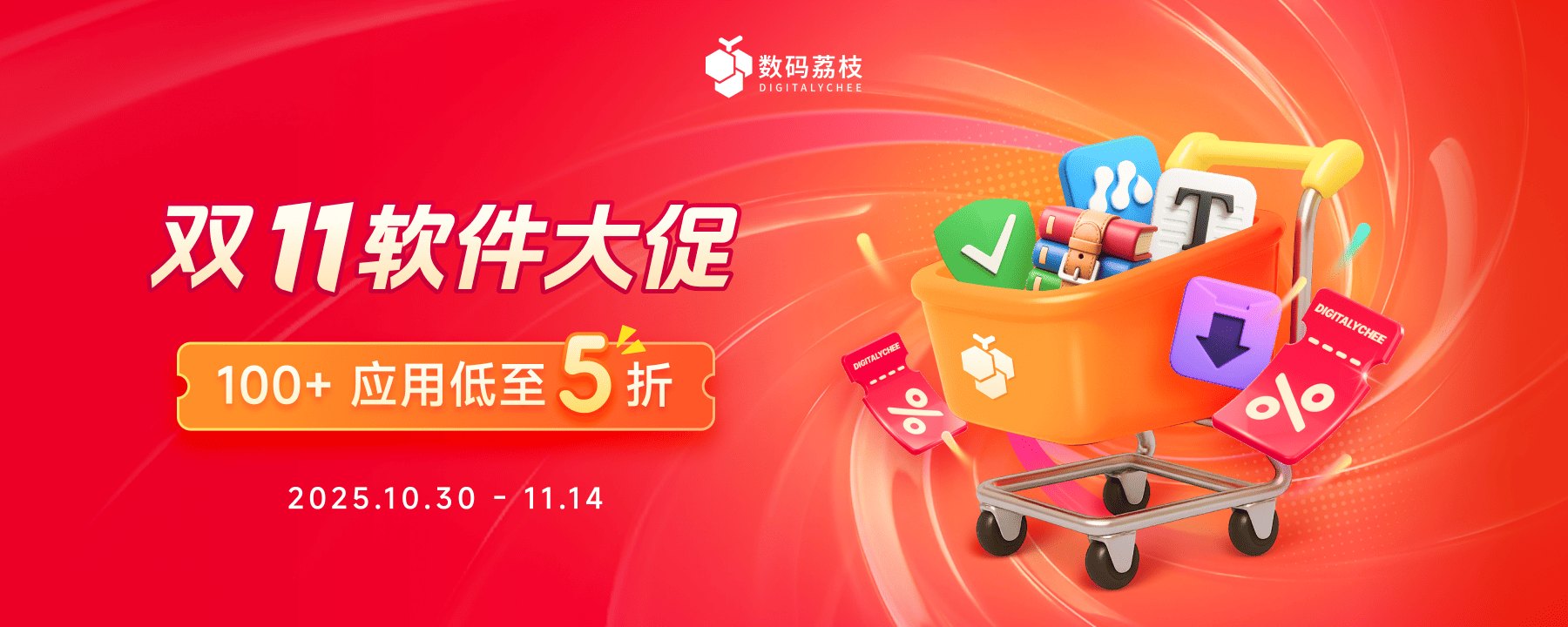 双 11 大促进行中,超 100 款活动软件等你来选购,全场低至 5 折!活动时间即日起至 11 月 14 日,点击我们的专属链接,立享优惠价。