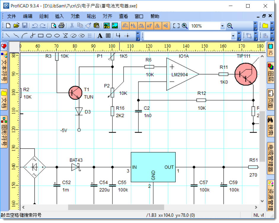 支持符号的自动编号,网表生成,电线列表,物料清单,条纹线路的绘制和进一步的高级功能。